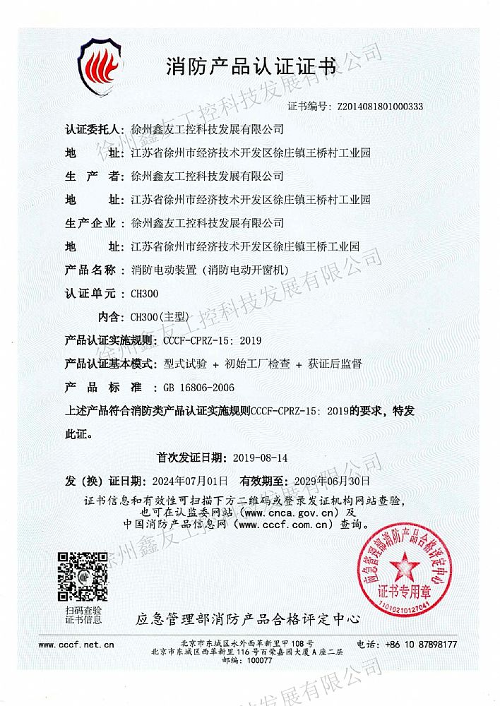 消防產(chǎn)品認(rèn)證CH300(2019...